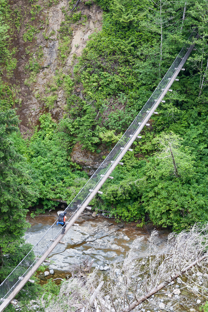 A bridge crosses the Tsusiat River, and we took a few minutes to stop and admire the water falling off the edge of the cliff from above the falls. Directly beyond was the Pacific Ocean, and in the absence of any visual cues related to the beach below, the perspective from this vantage point made it look like the Tsusiat River simply flowed into the ocean. My list of regrets is very short as it relates to this trip, but one is that I did not return to this spot once our camp was set up so that I could hike along the bank of the river to a point closer to where the river spilled over the edge to get pictures from there.